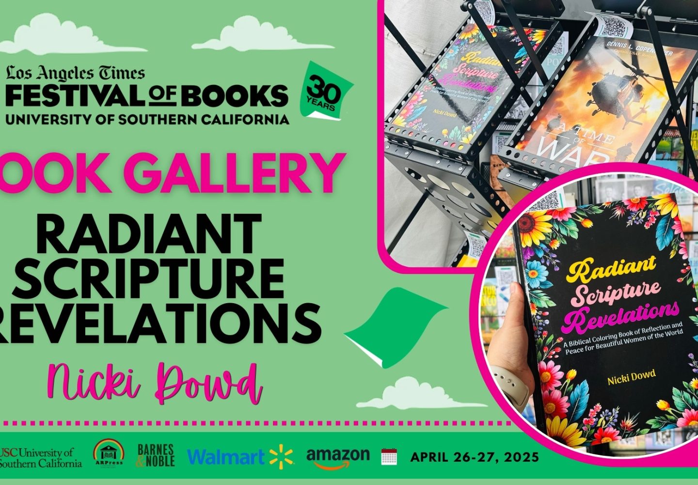 28Apr28Apr Book Gallery “Radiant Scripture Revelations” by Nicki Dowd is displayed at the 2025 Los Angeles Times Festival of Books (LATFOB) – Book Gallery 0 Comments Continue reading