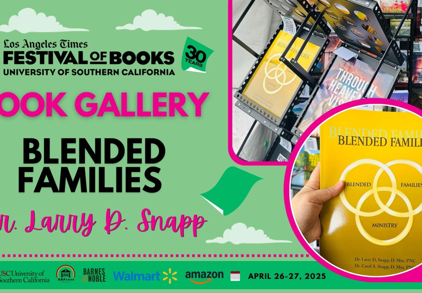 28Apr28Apr Book Gallery “Blended Families” by Dr. Larry D. Snapp, D.Min., PNC, and Dr. Carol A. Snapp, D.Min., PNC, is displayed at the 2025 Los Angeles Times Festival of Books (LATFOB) – Book Gallery 0 Comments Continue reading