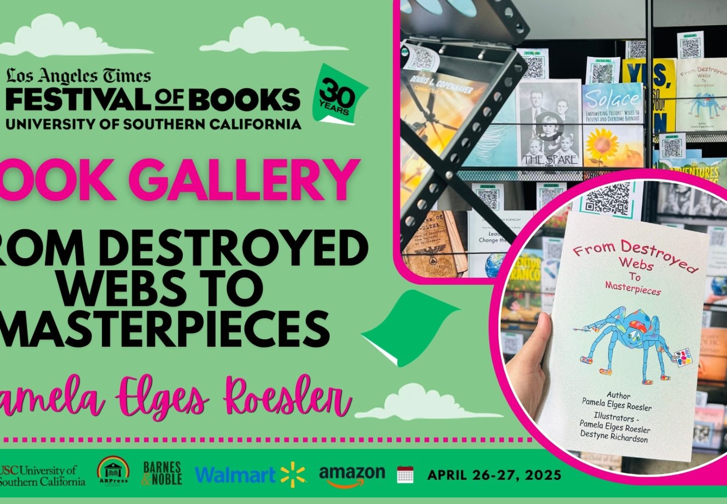 28Apr28Apr Book Gallery “From Destroyed Webs to Masterpieces” by Pamela Elges Roesler is displayed at the 2025 Los Angeles Times Festival of Books (LATFOB) – Book Gallery 0 Comments Continue reading