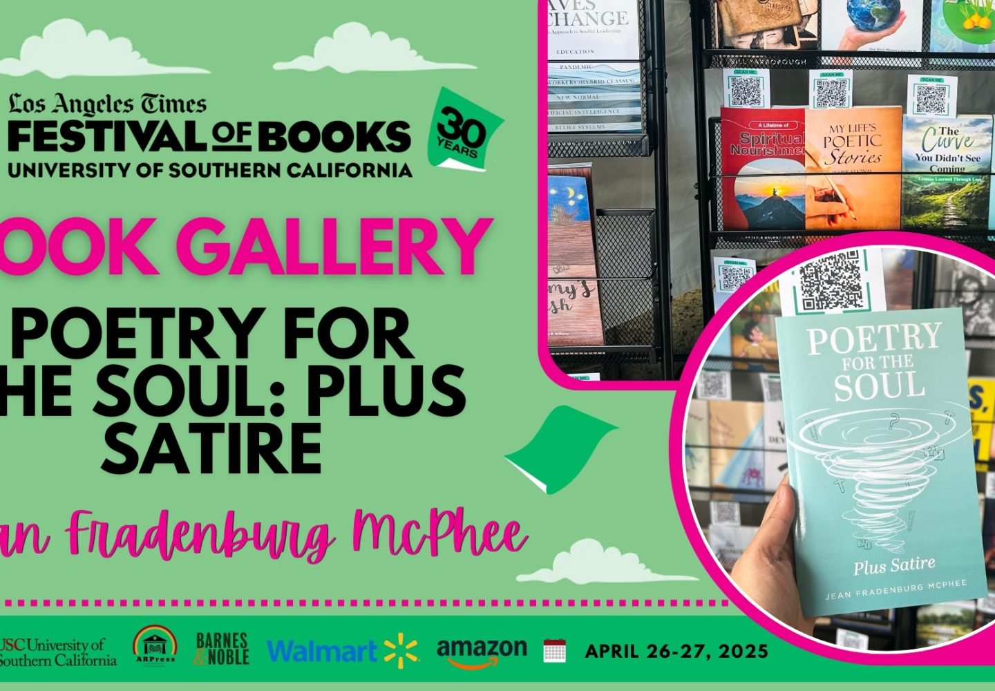28Apr28Apr Book Gallery “Poetry for the Soul: Plus Satire” by Jean Fradenburg McPhee is displayed at the 2025 Los Angeles Times Festival of Books (LATFOB) – Book Gallery 0 Comments Continue reading