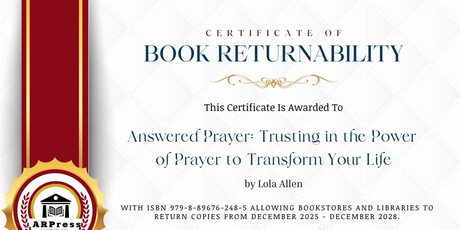 Beyond the message itself, returnability remains an essential consideration for both authors and readers. Books offered with returnability are significantly more likely to be stocked by brick-and-mortar bookstores, libraries, churches, and independent retailers. This accessibility is especially important for faith-based books like Answered Prayer, which often reach readers through in-person discovery, community recommendations, and shared spiritual spaces rather than online searches alone.