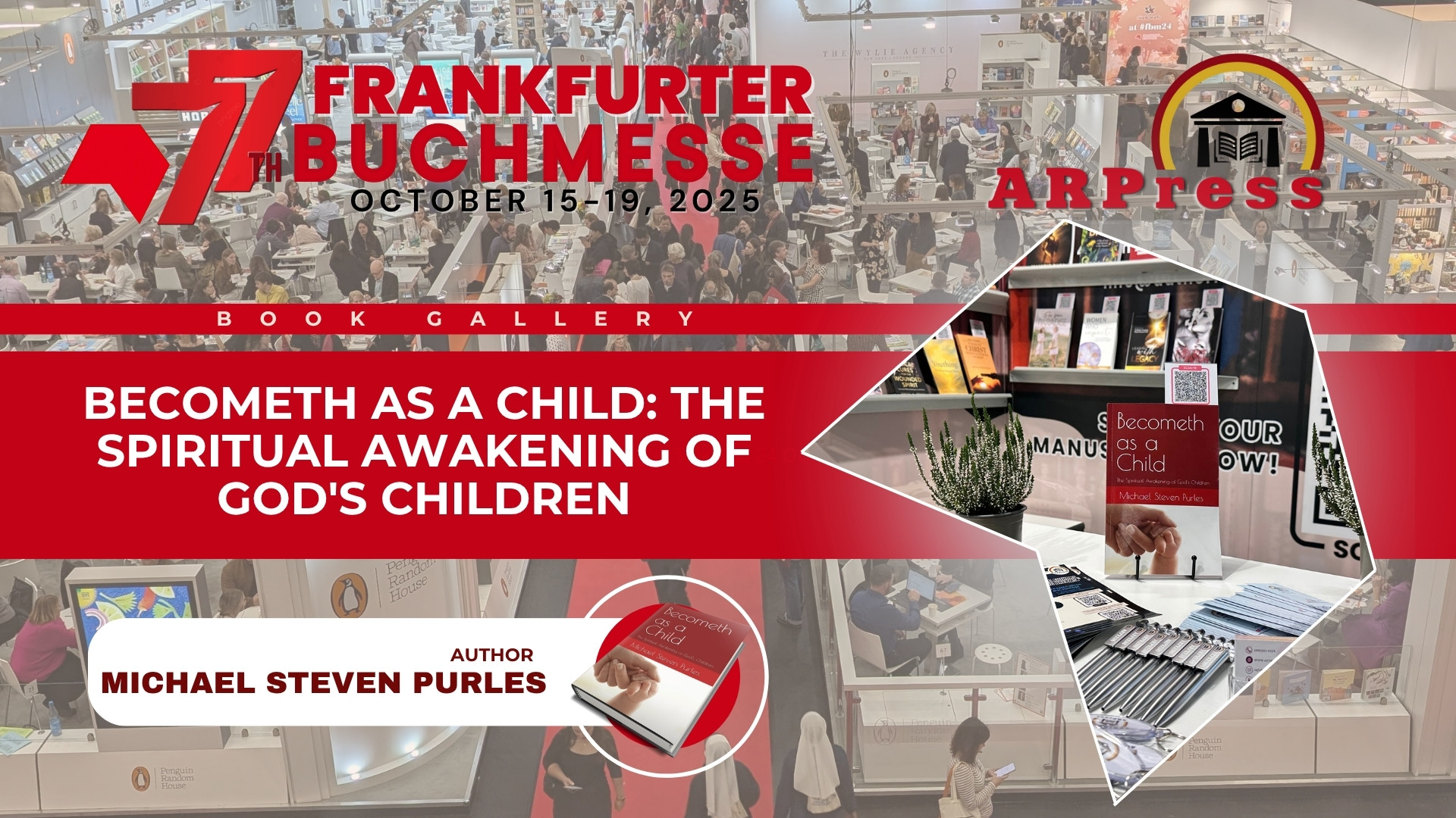 Among the books displayed by ARPress at the Frankfurter Buchmesse in Frankfurt, Germany, from October 15 to 19, 2025, Becometh as a Child: The Spiritual Awakening of God’s Children by Michael Steven Purles stood out quietly amid the buzz of the world’s largest publishing event. The fair, in its 77th edition, felt like a live pulse of the book-world: five days where ideas, culture, commerce, discovery and connection all collided in one place.