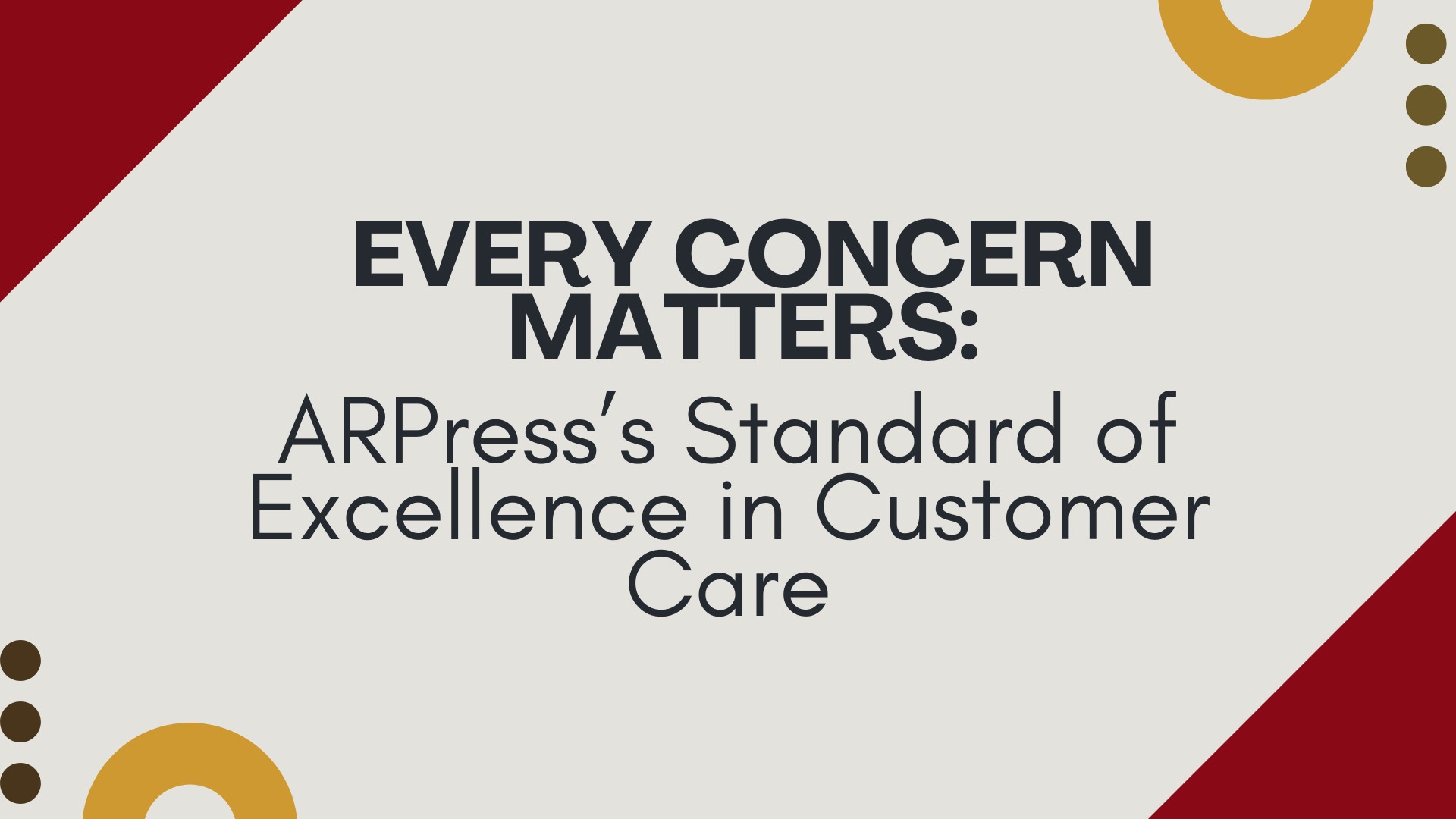 Customer care doesn’t end once a concern has been resolved. At ARPress, we make it a point to follow up afterward, checking in to ensure our clients are fully satisfied with the outcome. This not only closes the loop but also shows that we’re invested in the client’s long-term success. We also use each concern as an opportunity for reflection: What worked well in our response? Where can we improve? How can we prevent similar issues in the future?