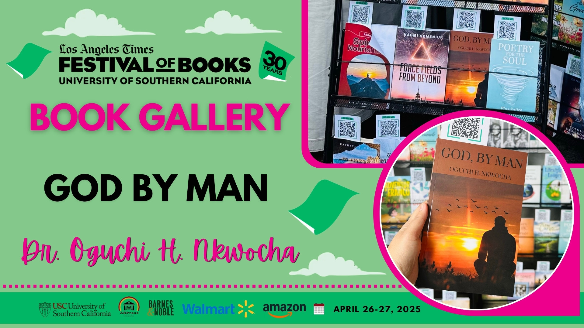 LATFOB 2025 provides a unique opportunity to explore new voices, groundbreaking ideas, and thought-provoking works of art. This year, one of the most anticipated entries is “God, By Man” by Oguchi H. Nkwocha, M.D., which is being showcased in the Book Gallery. A thought-provoking exploration of theological themes that challenge traditional religious beliefs.