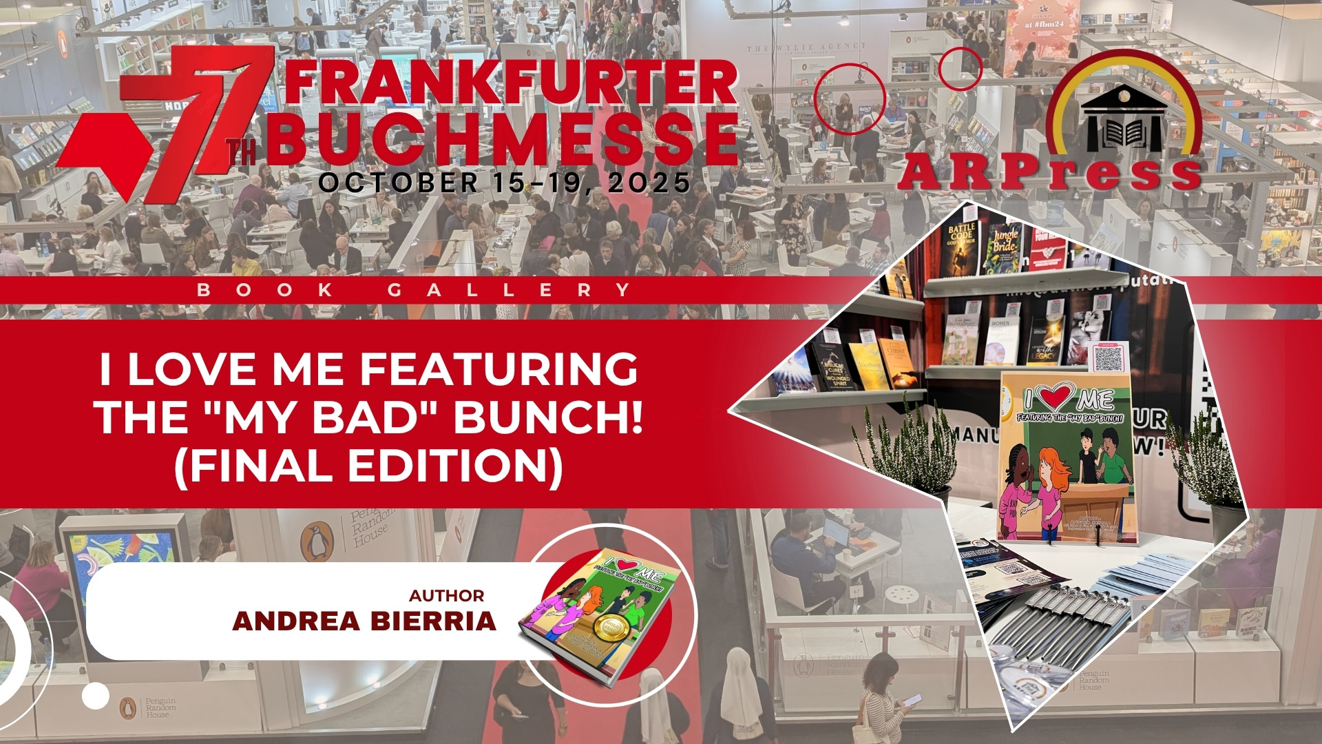 Among the books displayed by ARPress at the Frankfurter Buchmesse in Frankfurt, Germany, from October 15 to 19, 2025, I Love Me Featuring the “My Bad” Bunch! (Final Edition) by Andrea Bierria stood out quietly amid the buzz of the world’s largest publishing event. The fair, in its 77th edition, felt like a live pulse of the book-world: five days where ideas, culture, commerce, discovery and connection all collided in one place.