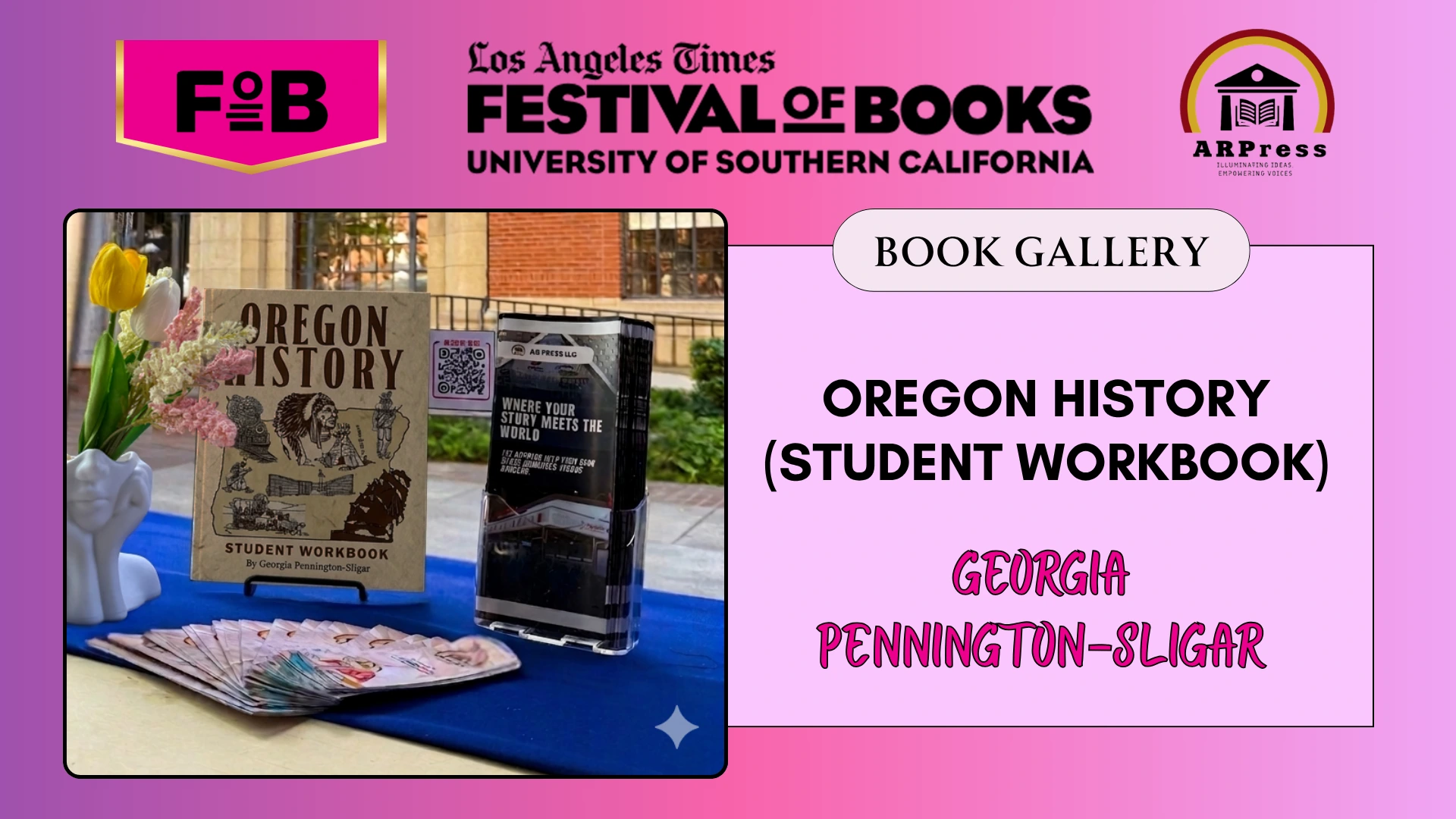 The festival, organized annually by the Los Angeles Times, serves as a major hub for the publishing industry, where authors and publishers gain visibility, connect with readers, and engage in conversations that shape contemporary literary culture. With hundreds of exhibitors and a wide range of programming, LATFOB creates direct pathways for authors to present new works, reach wider audiences, and participate in discussions that extend beyond the page. For ARPress, this environment supports its mission of amplifying author voices and positioning its catalog within a global literary marketplace.