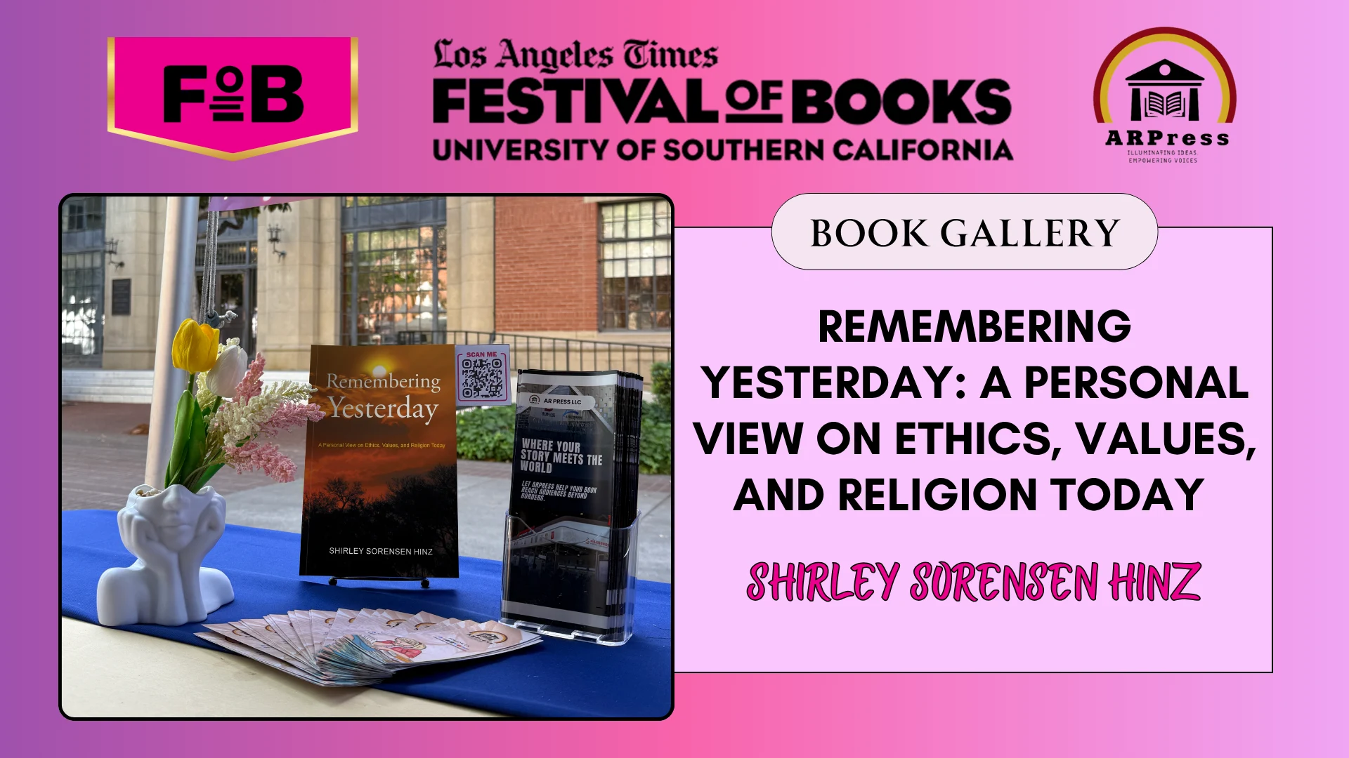 The festival, organized annually by the Los Angeles Times, serves as a major hub for the publishing industry, where authors and publishers gain visibility, connect with readers, and engage in conversations that shape contemporary literary culture. With hundreds of exhibitors and a wide range of programming, LATFOB creates direct pathways for authors to present new works, reach wider audiences, and participate in discussions that extend beyond the page. For ARPress, this environment supports its mission of amplifying author voices and positioning its catalog within a global literary marketplace.