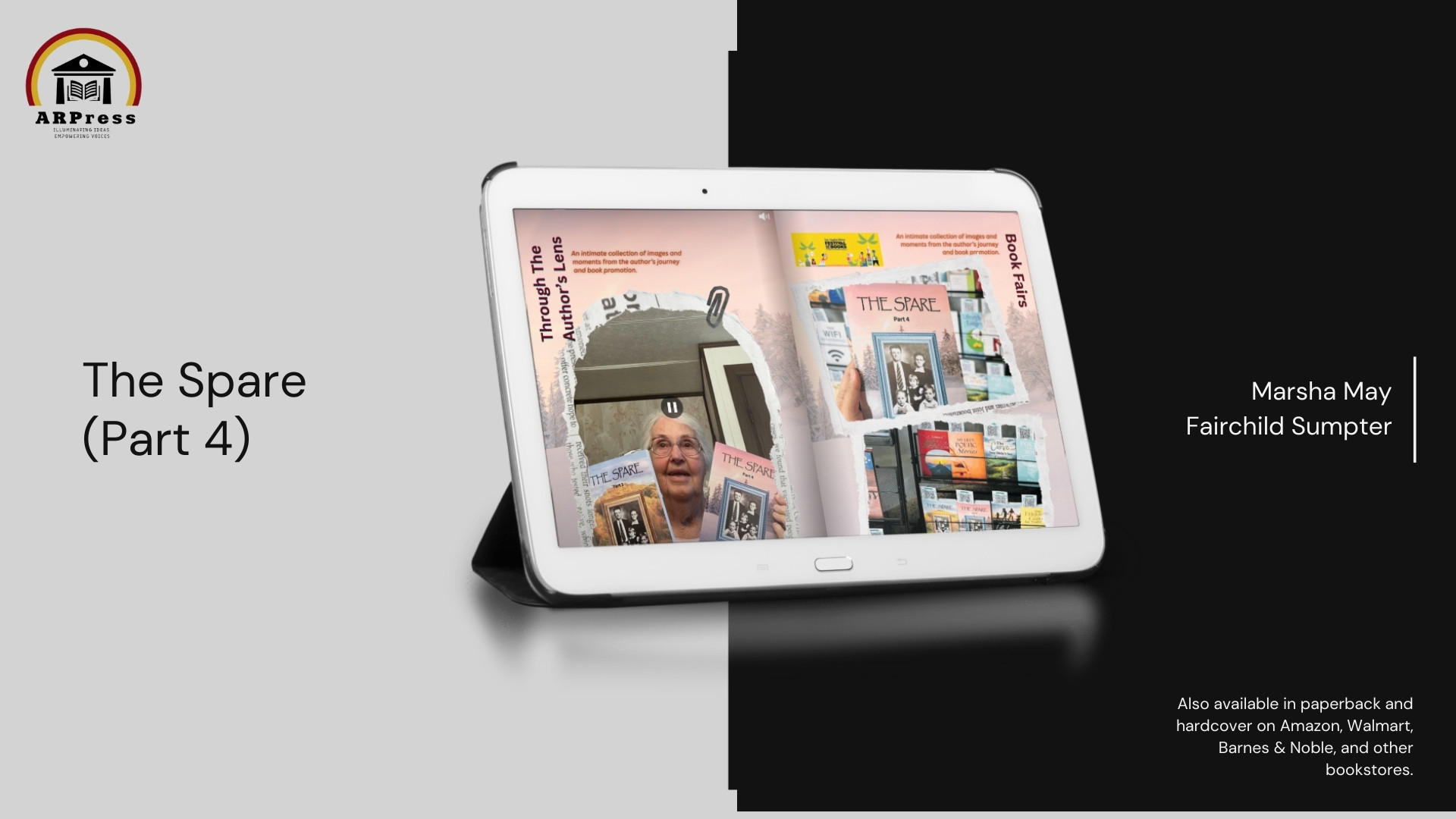 ARPress is honored to announce that the flipbook format of The Spare (Part 4) by Marsha May Fairchild Sumpter is now available for purchase. The book is also offered in other formats on Amazon, Barnes & Noble, and the ARPress website.